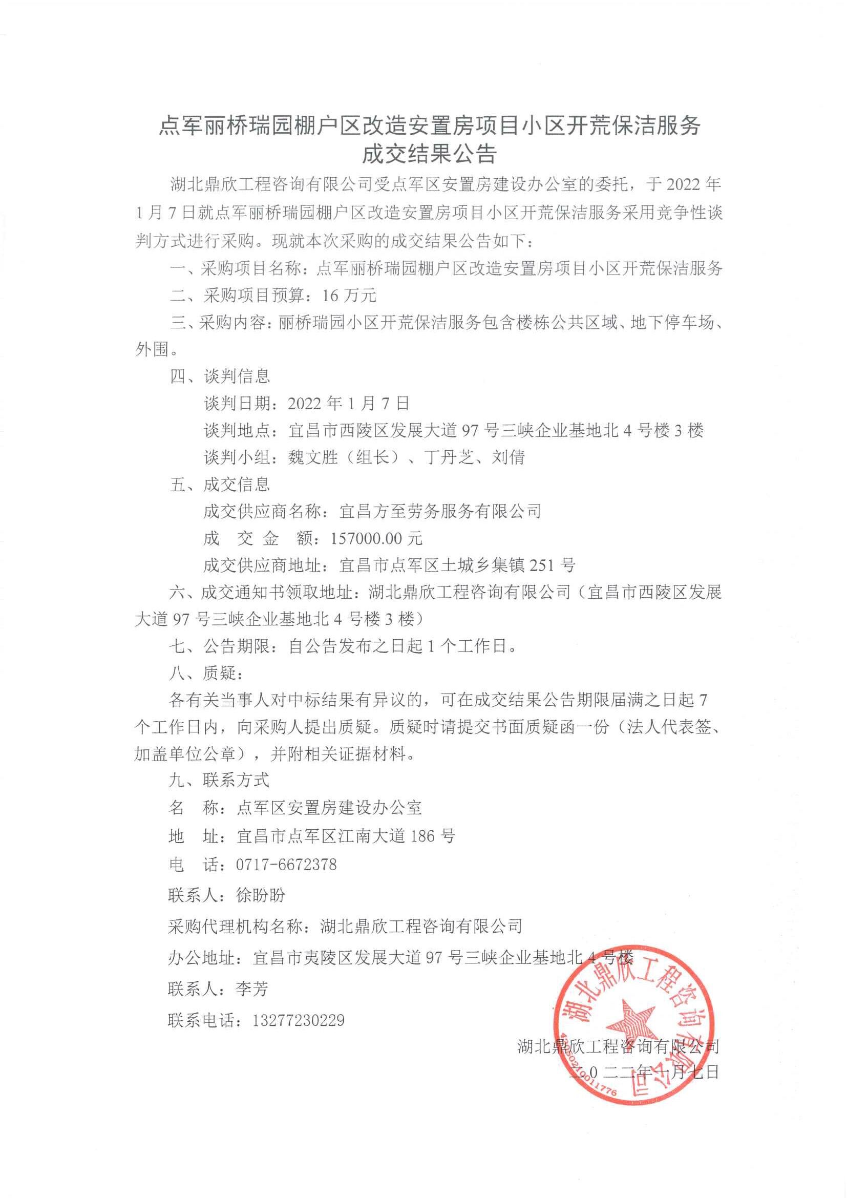 點(diǎn)軍麗橋瑞園棚戶區(qū)改造安置房項(xiàng)目小區(qū)開(kāi)荒保潔服務(wù)成交公告