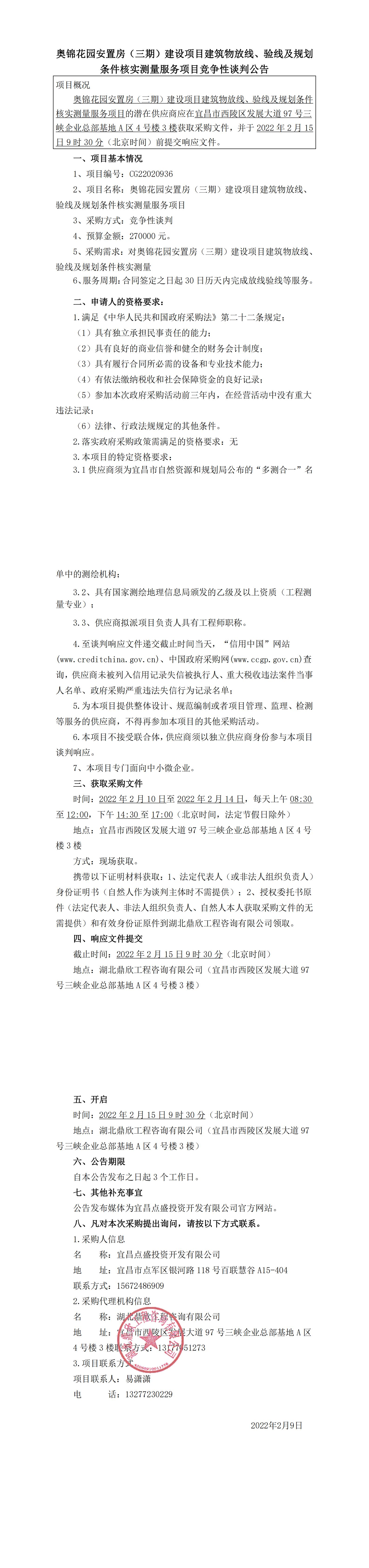 奧錦花園安置房(三期)建設項目建筑物放線、驗線及規(guī)劃條件核實測量服務項目競爭性談判公告