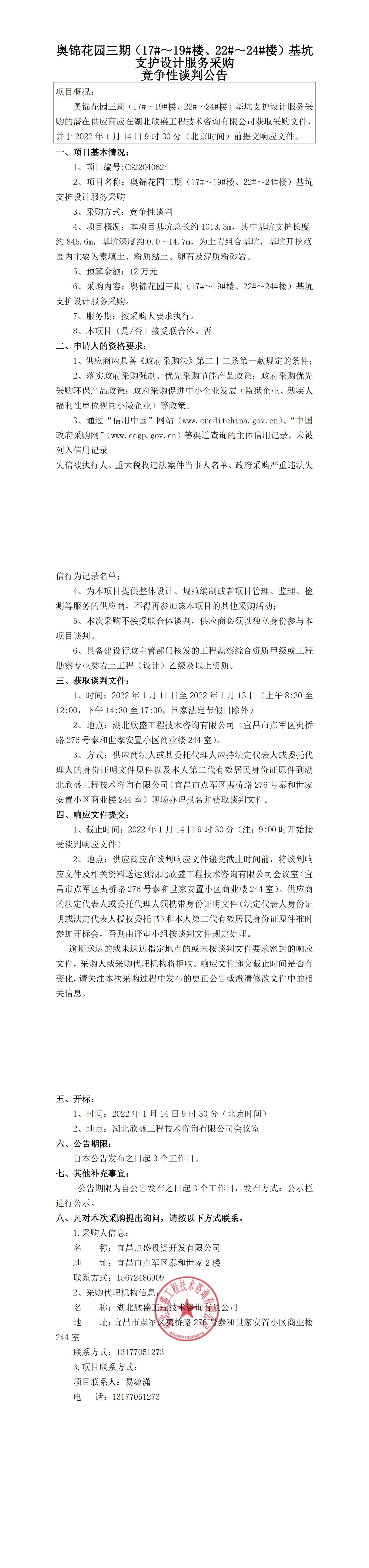 奧錦花園三期(17#~19#樓、22#~24#樓)基坑支護(hù)設(shè)計服務(wù)采購競爭性談判公告