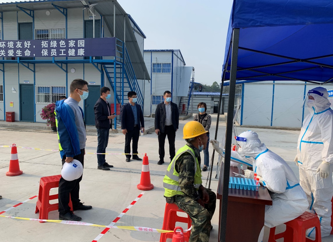 區(qū)委副書記王建紅現(xiàn)場督導(dǎo)相關(guān)工作,高度肯定了這次工地核酸采樣試點工作。要求項目工地要堅守“幸福生活共同締造”信念,將工地設(shè)置自主核酸采樣點的方式推廣到全區(qū),讓工人們能不出工地做核酸,最大限度的保障疫情防控和項目施工兩不誤!