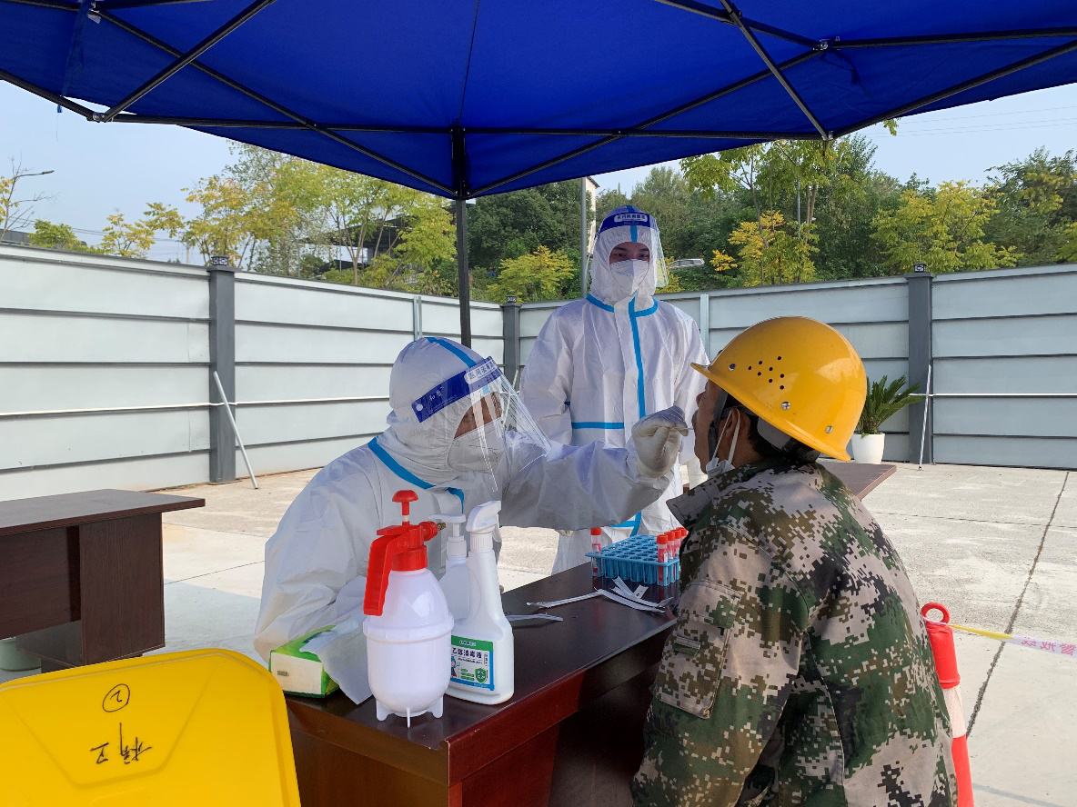 11月5日,為響應(yīng)區(qū)政府防疫部門有關(guān)防疫要求,全面筑牢疫情防線,切實保障全體施工人員的身體健康和生命安全,點盛公司聯(lián)動點軍區(qū)橋邊衛(wèi)生院和國機(jī)集團(tuán)在奧錦花園安置房(三期)項目部開展核酸采樣試點運行工作。取得核酸采樣合格證的奧錦花園三期項目安全員李懿、龍明超為本項目300余名工人順利的完成了核酸采樣工作。