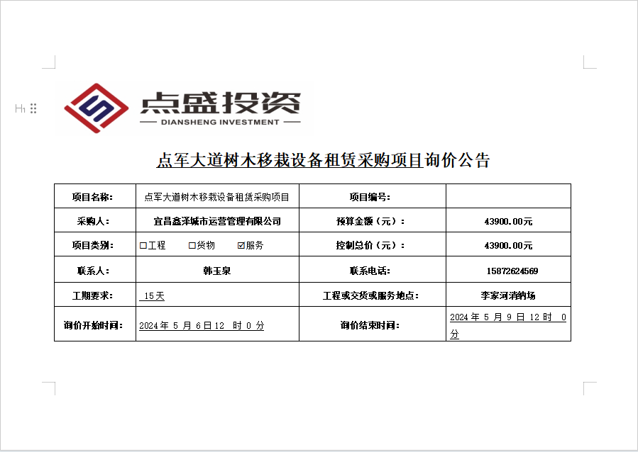 發(fā)布時間:2024/5/6 來源:宜昌點盛投資開發(fā)有限公司 訪問:314