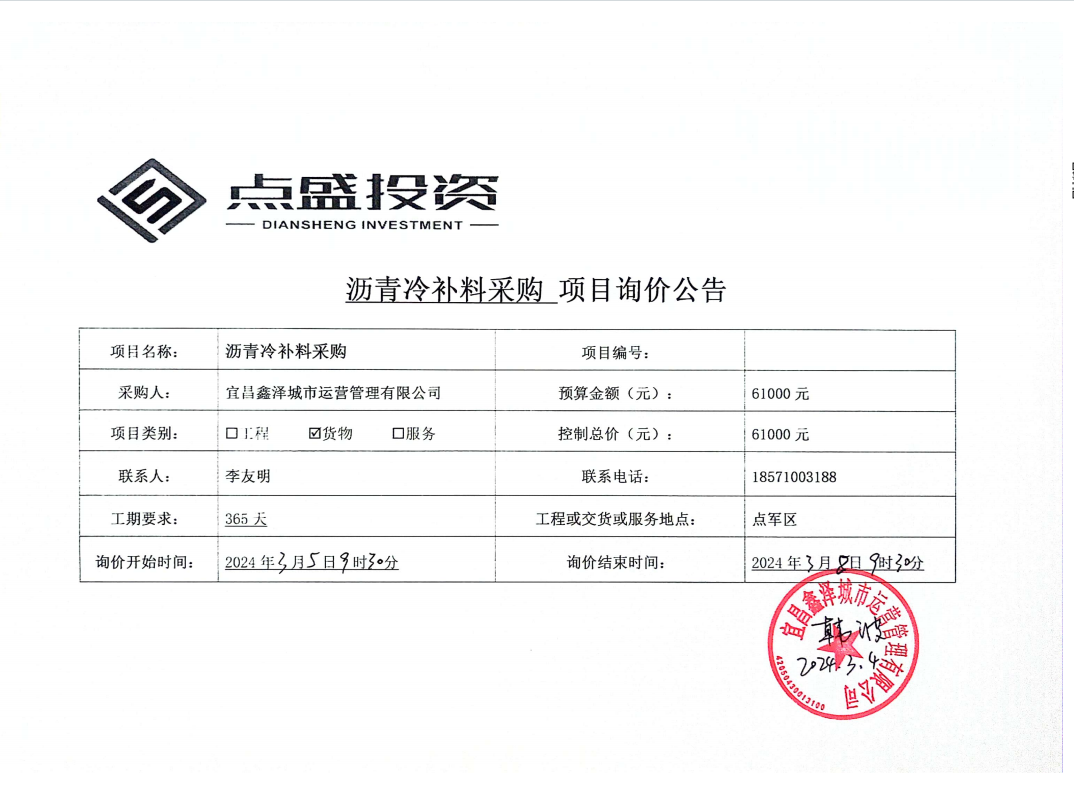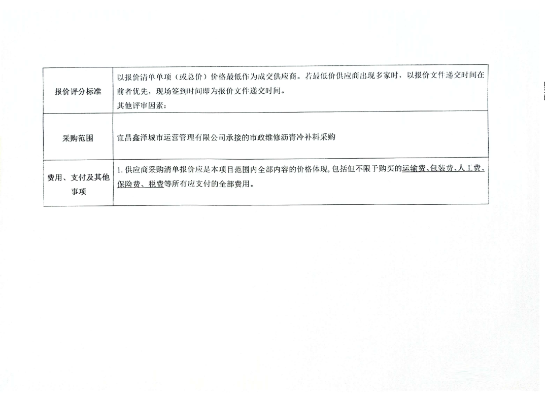 宜昌鑫澤城市運營管理有限公司瀝青冷補料采購項目詢價公告