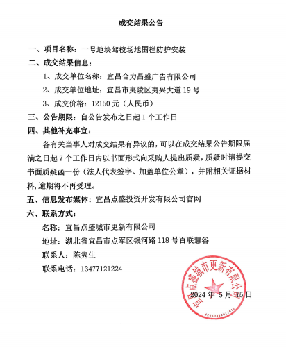 城市更新一號(hào)地塊駕校場地圍欄防護(hù)安裝成交公告