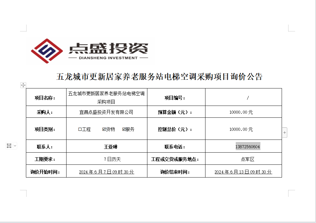 五龍城市更新居家養(yǎng)老服務(wù)站電梯空調(diào)采購(gòu)項(xiàng)目詢(xún)價(jià)公告