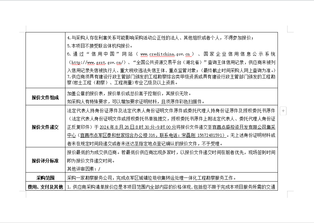 點軍區(qū)城鎮(zhèn)垃圾收集轉(zhuǎn)運處理一體化工程勘察服務(wù)詢價公告