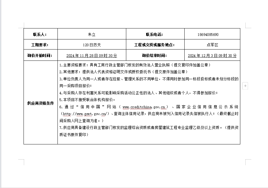 詢價(jià)公告