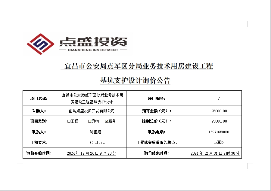 宜昌市公安局點(diǎn)軍區(qū)分局業(yè)務(wù)技術(shù)用房建設(shè)工程基坑支護(hù)設(shè)計(jì)詢(xún)價(jià)公告