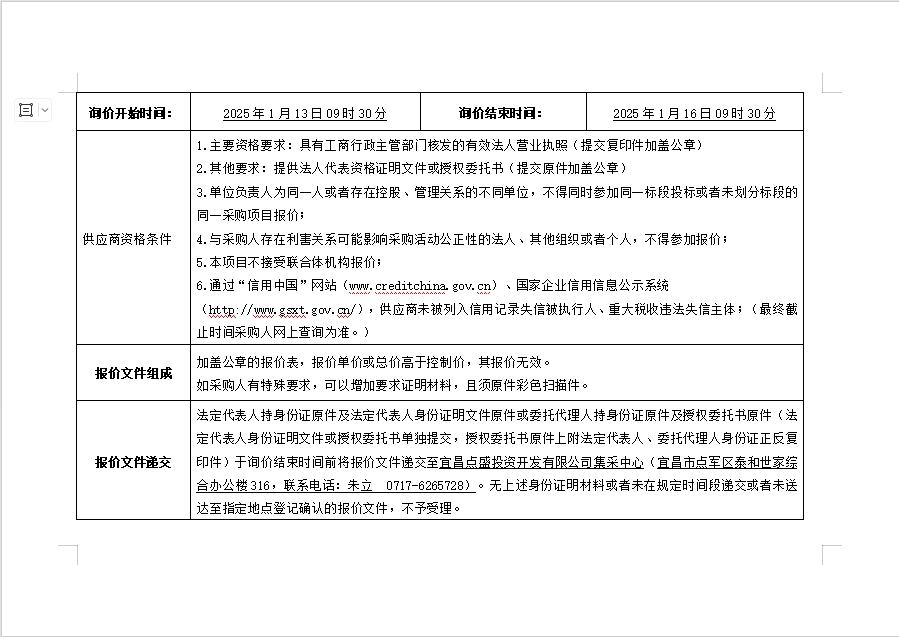 詢(xún)價(jià)公告